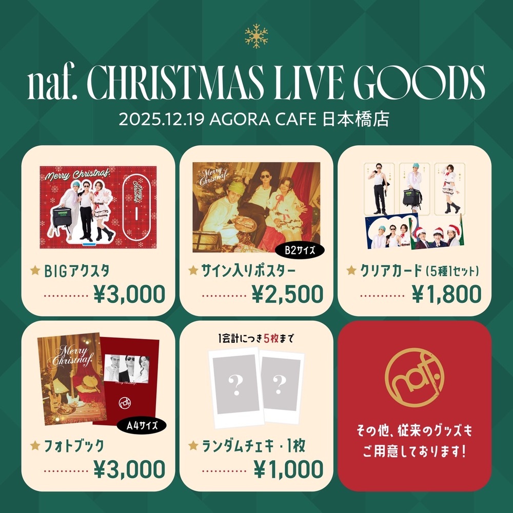 「naf. CHRISTMAS LIVE」ドリンク、フードチケットページ